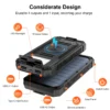 Perfect for everyday use with built-in flashlight, solar support, and dual USB outputs.