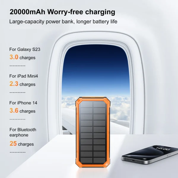 97 reviews for Solar Power Bank Wireless Charger 20,000mAh,Portable Solar Powered USB C Input/Output with Camping Flashlight for Cell Phone